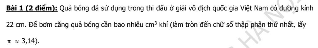 -cm^3 cần bơm căng quả bóng chính bằng thể tích của quả bóng nên ta có:
