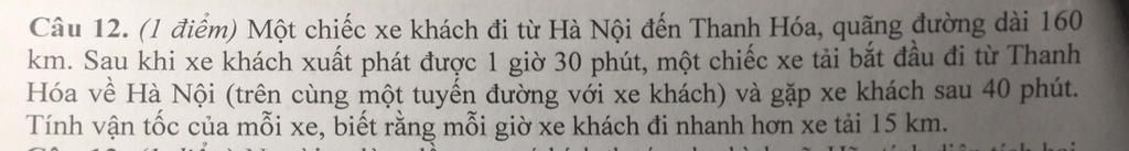 Xe tải xuất phát sau xe khách 1 giờ 30 phút = 1.5 giờ.