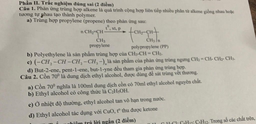 $But-1-yne$ không tham gia phản ứng trùng hợp