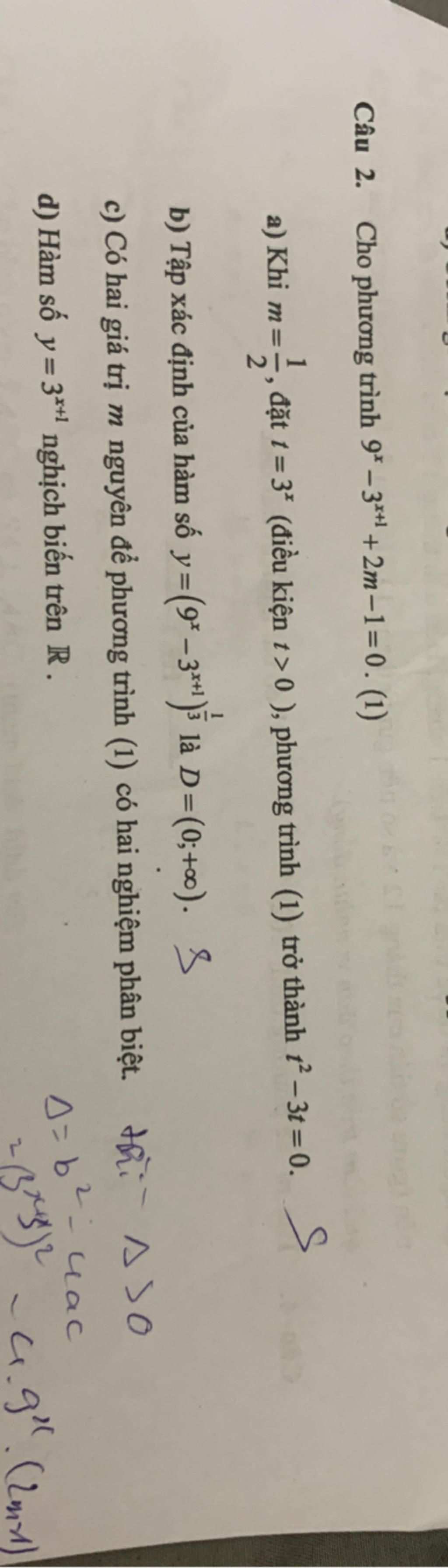 `a) m = 1/2 -> 9^x -3^(x+1) =0`