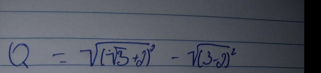 `Q=sqrt{(sqrt3+2)^2}-sqrt{(3-2)^2}`