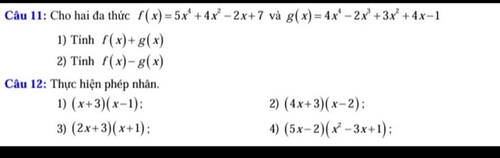 `4, (5x-2)(x^2-3x+1)=5x^3 - 15x^2+5x-2x^2+6x-2=5x^3 -17x^2+11x-2`