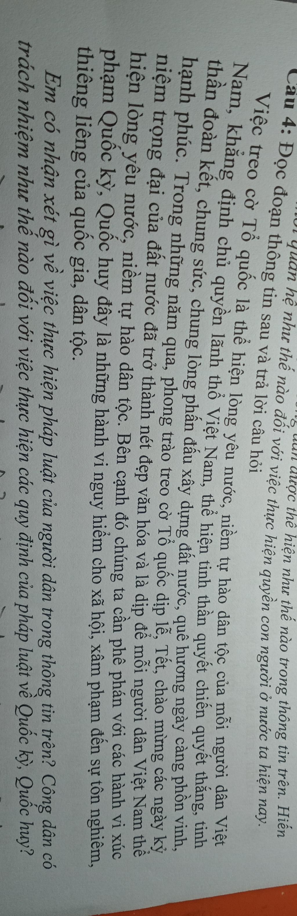 `-` Em có nhận xét về việc thực hiện pháp luật của người dân trong thông tin trên là `:`