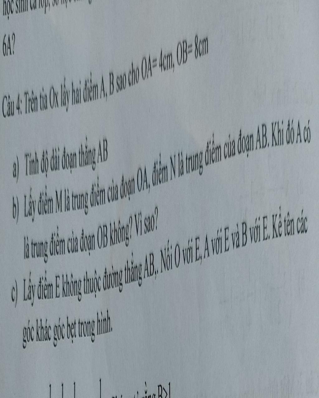 b) lấy đêm là trọng điểm của đoạn 01, điểm Milk trang điểm của đoạn AB khi đó An