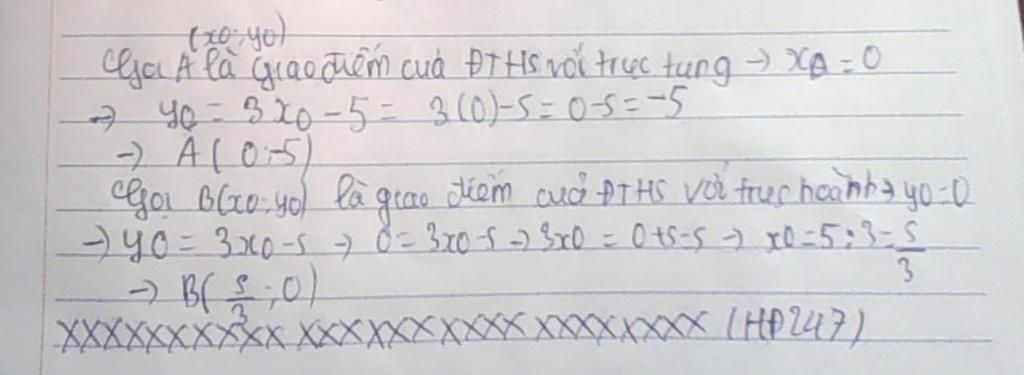 Thay `y = 0` vào phương trình hàm số `y = 3x - 5`:
