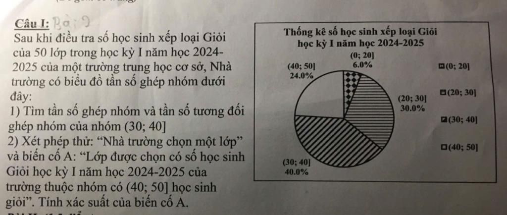 Sau khi điều tra số học sinh xếp loại Giỏi