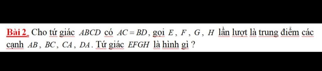 Ta có: $E, F, G, H$ là trung điểm $AB, BC, CD, dA$