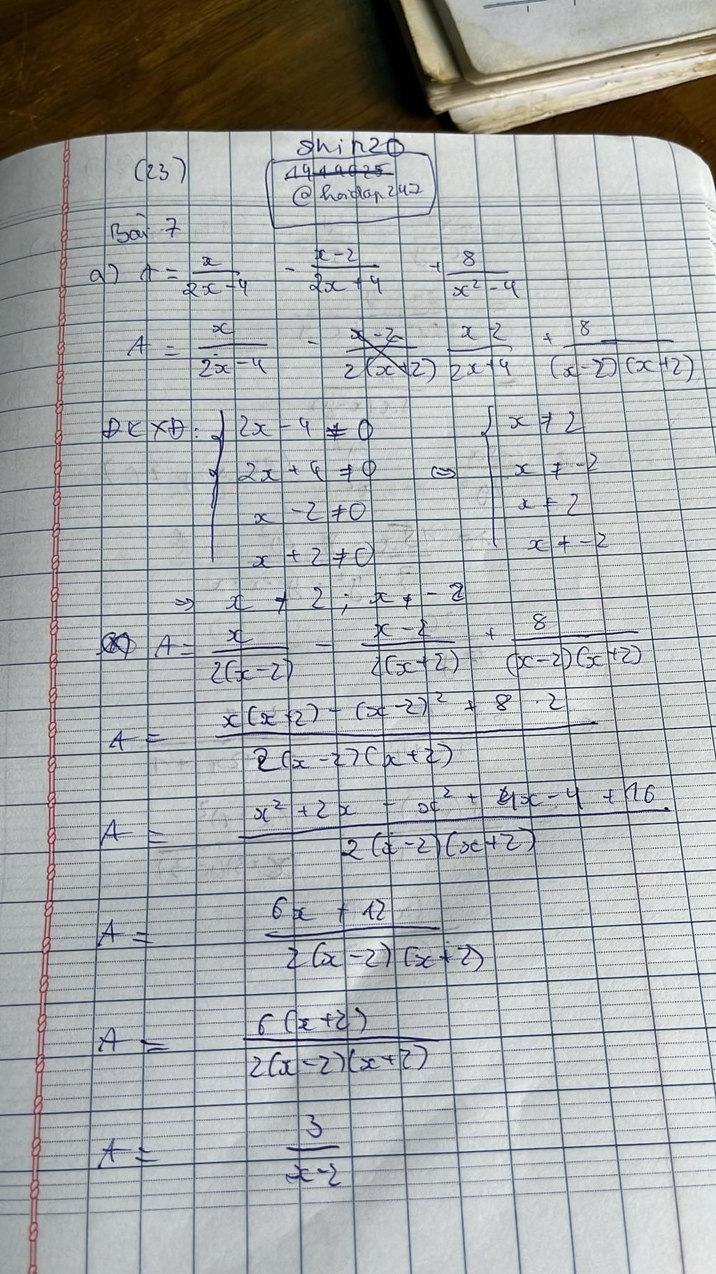 Bài 7. Cho biểu thức A= x/2x - 4-x-2/2x + 4+8/x^2-4