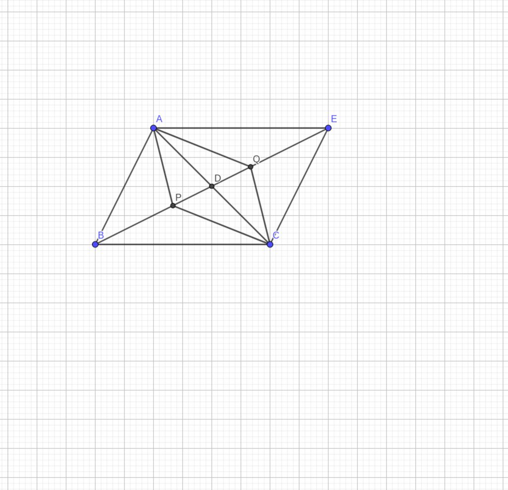 Tương tự: $CQ$ đi qua trung điểm $AE$