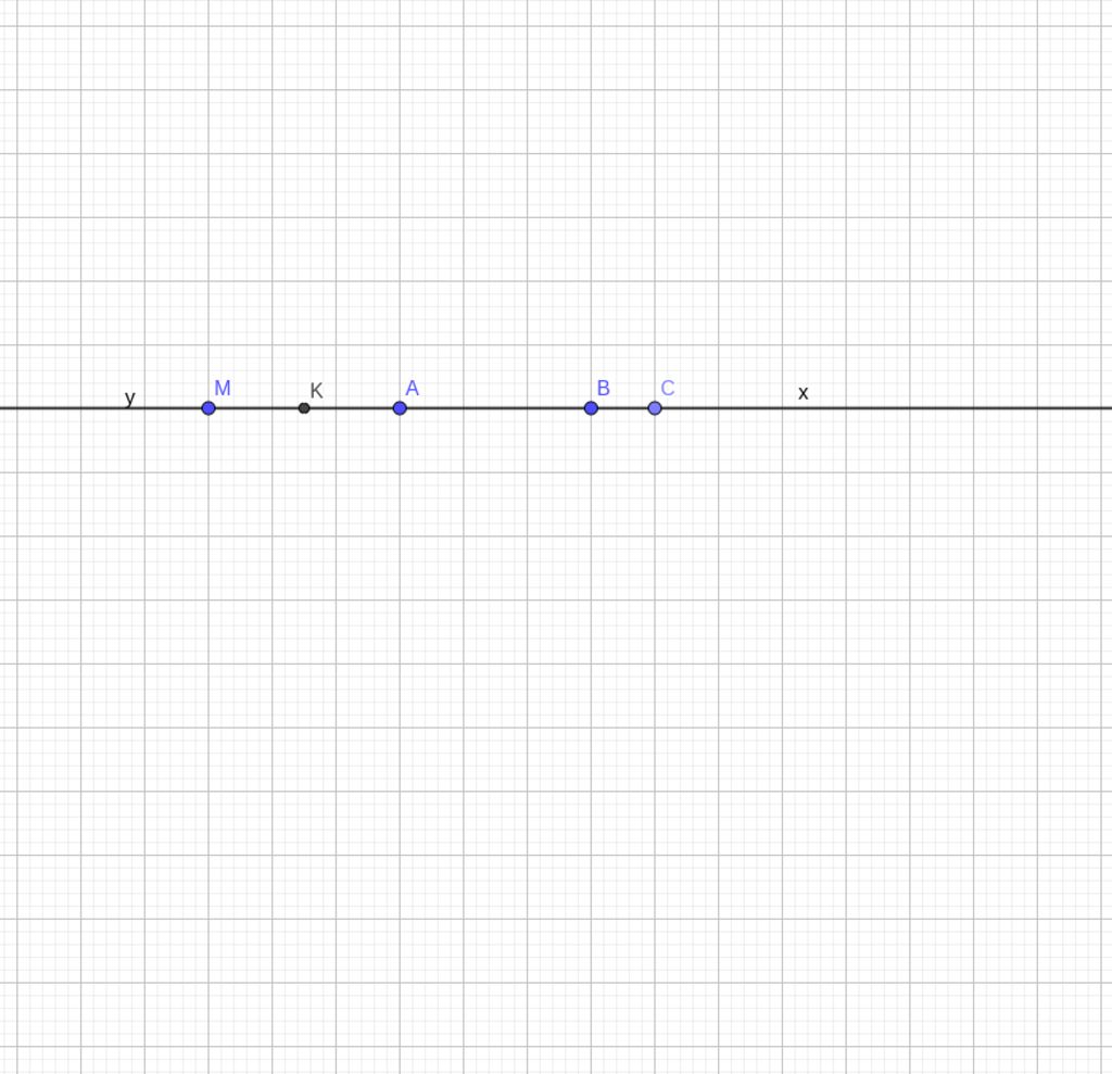Cho 2 tia Ax và Ấy đối nhau.Trên tia Ax lấy 2 điểm B và C sao cho B nằm giữa A và C và AC = 8cm,AB=6cm.Trên tia Ấy lấy điểm M.Gọi K là trung điểm của đoạn thẳng AM Chứng minh BK=(BA+BM):2