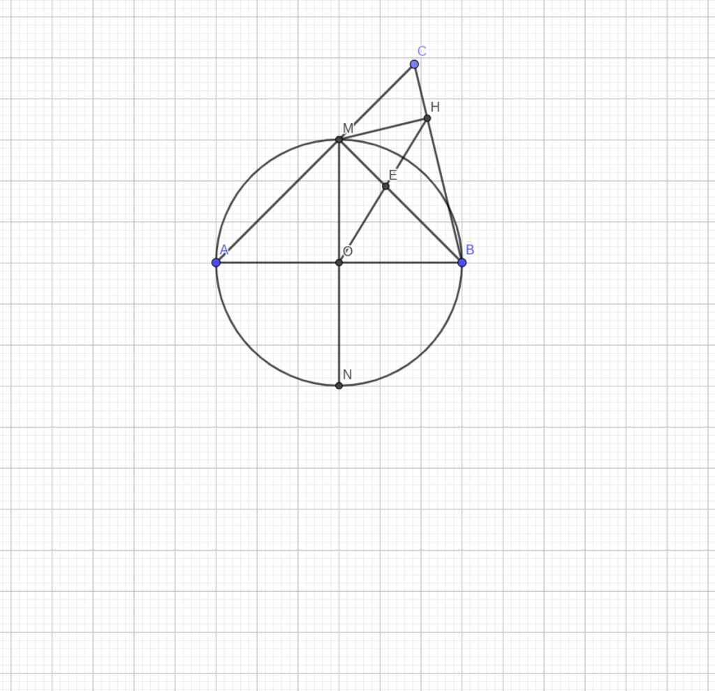 Cho đã trên tâm (0) có 2 đường kính AB và MN vuông với nhau. trên tia đối của tia MA lấy điểm C (C khác M) kẻ MH vuông BC (H thuộc BC)