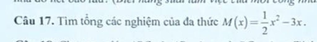 Tổng các nghiệm của đa thức `M(x)` là : `0+6=6`