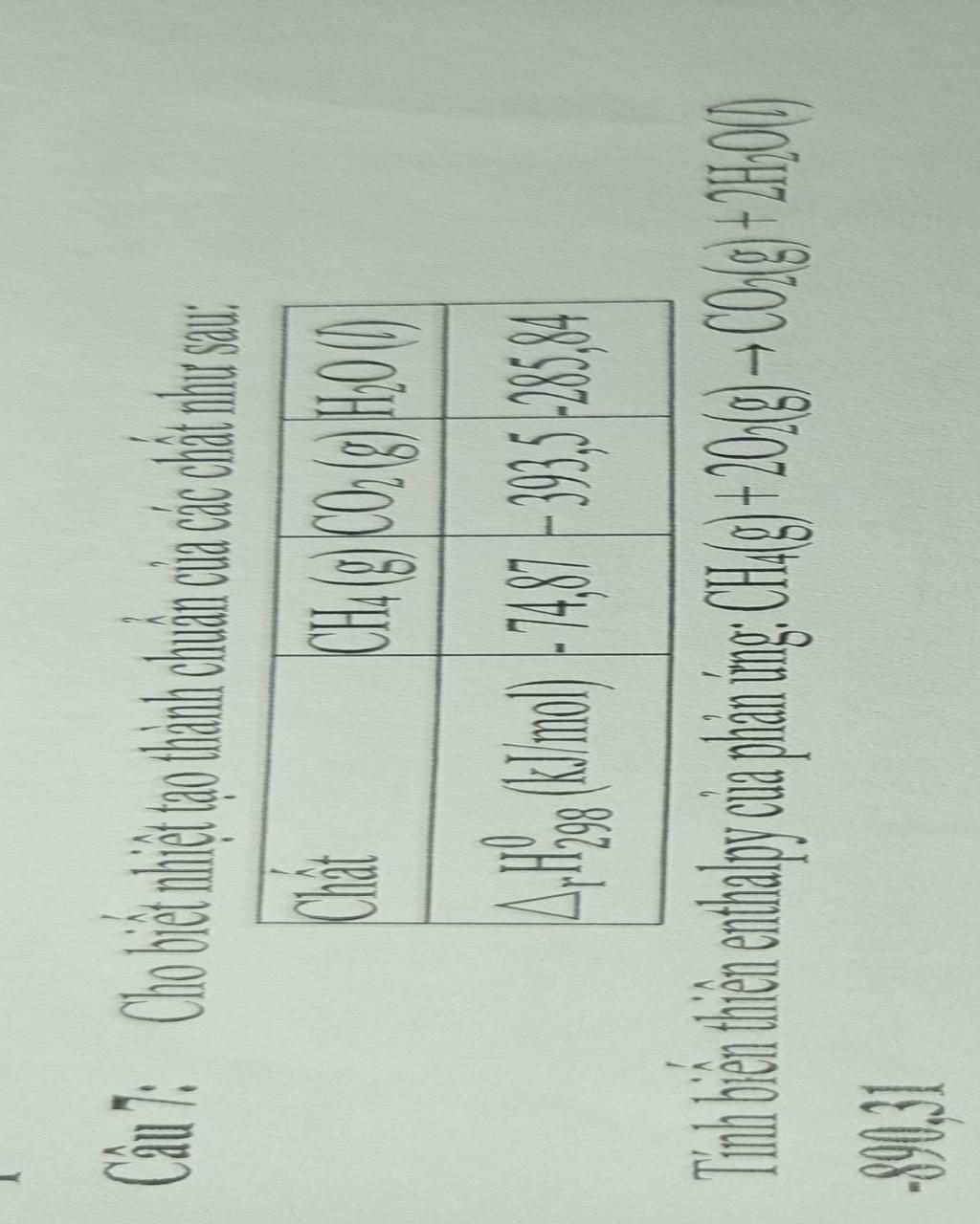 Vậy $\Delta$rH°₂₉₈ = –890,31kJ