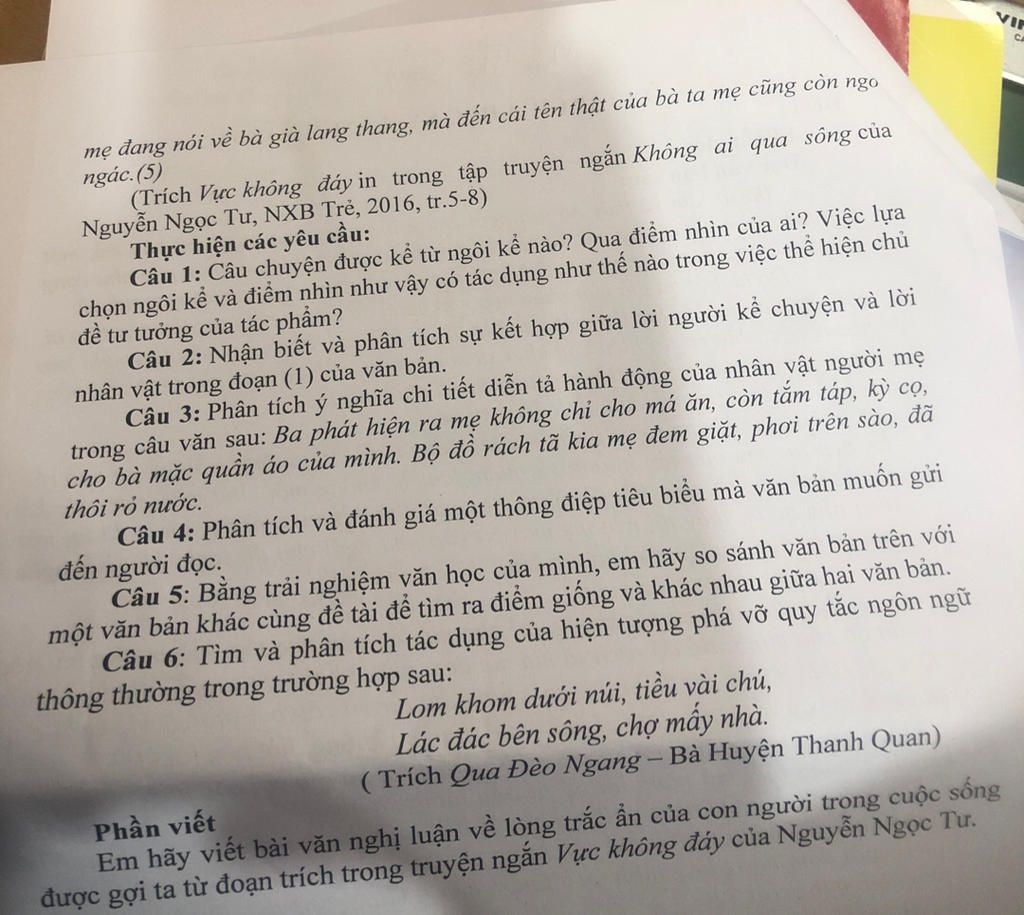 (Trích Vực không đáy in trong tập truyện ngắn Không ai qua sông của