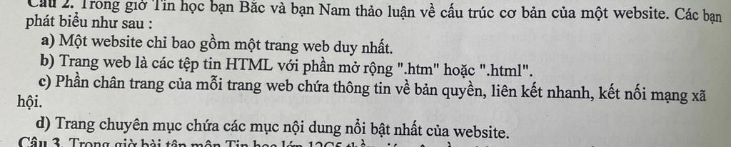 2. Trong giờ Tin học bạn Bắc và bạn Nam thảo luận về cấu trúc cơ bản của một website. Các bạn