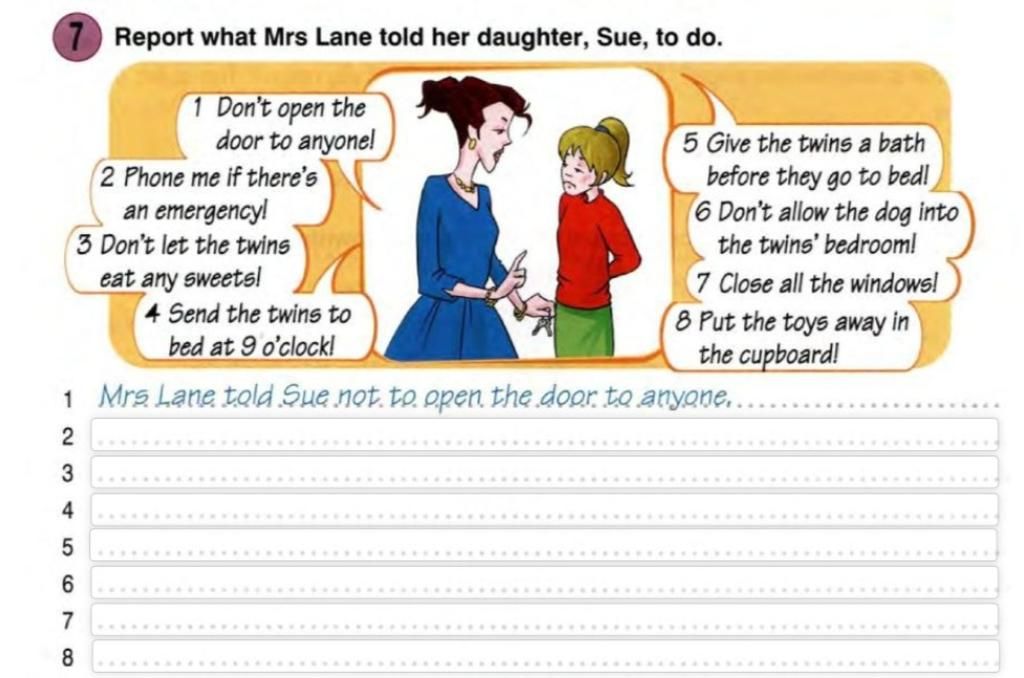 7. Mrs. Lane told Sue to close all the windows.