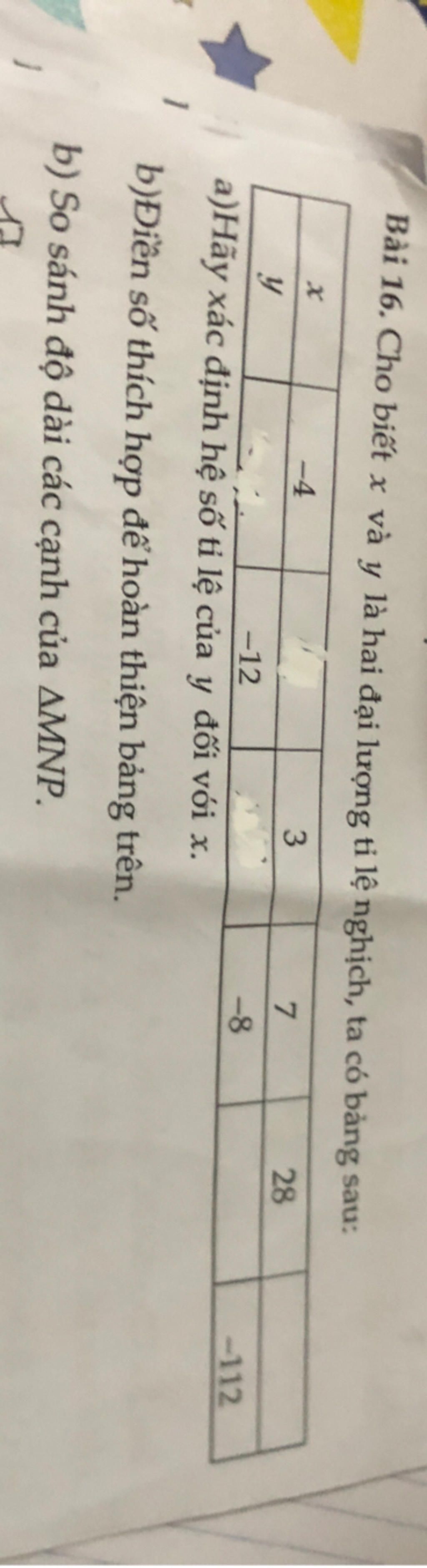 `b,` Có công thức: `y = (-56)/x`