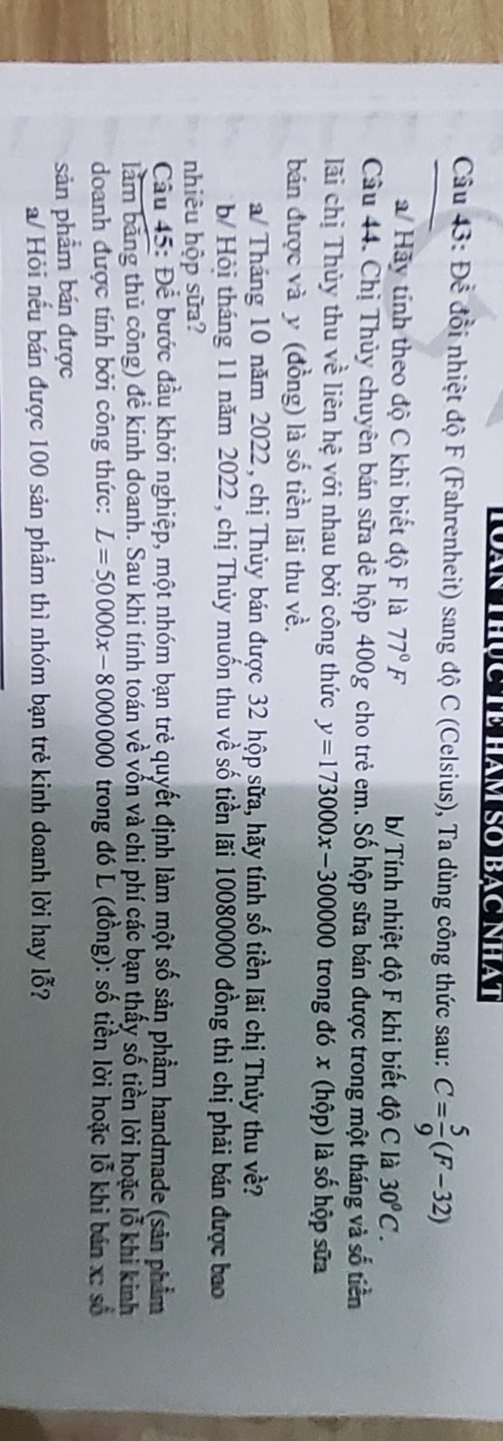 Thay x = 100 vào công thức: L = 50000 . 100 - 8000000 = 5000000 - 8000000 = -3000000
