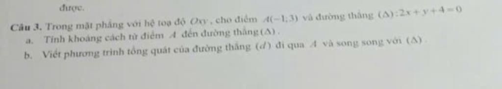 b. Viết phương trình tổng quát của đường thẳng (d) đi qua 4 và song song với (A)