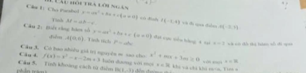 Câu 1. Cho Para Thi c{30} có đỉnh 7-14) và đi qua điều 125)