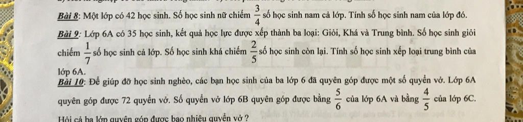 Bài 9: Lớp 6A có 35 học sinh, kết quả học lực được xếp thành ba loại: Giỏi, Khá và Trung bình. Số học sinh giỏi