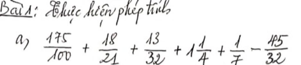 `175/100 + 18/21 + 13/32 + 1 1/4 + 1/7 - 45/32`