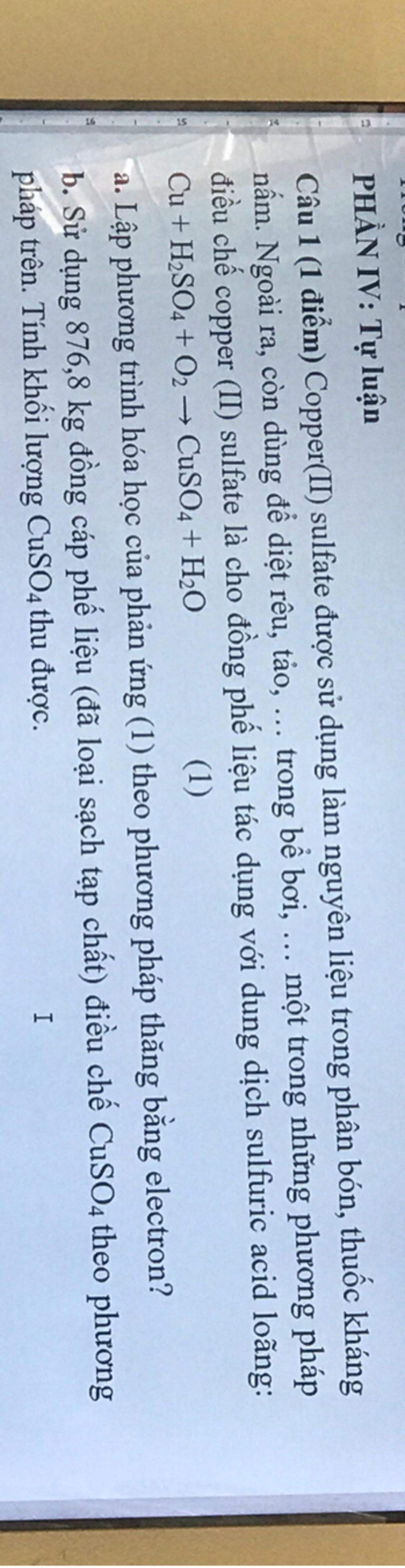 b) `n_{Cu} = (876,8)/64 = 13,7` (kmol)