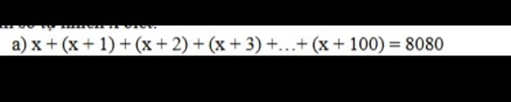 `a) x + (x + 1) + (x + 2) + (x + 3) + ... + (x + 100) = 8080`