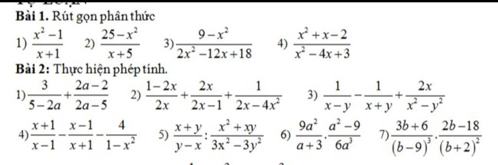 Bài 1. Rút gọn phân thức