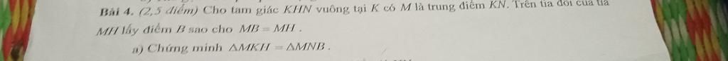 `=>` `\triangle` `MKH` `=` `\triangle` `MNB` `(c.g.c)`