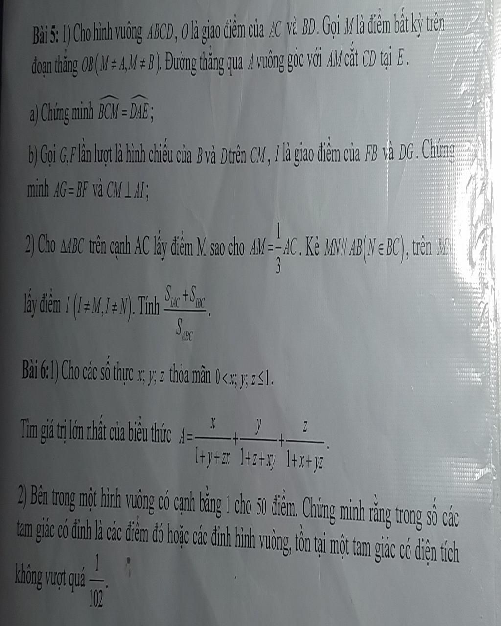 Bài 5: 1) Cho hình vuông ABCD, O là giao điểm của AC và BD. Gọi M là điểm bất kỳ trên