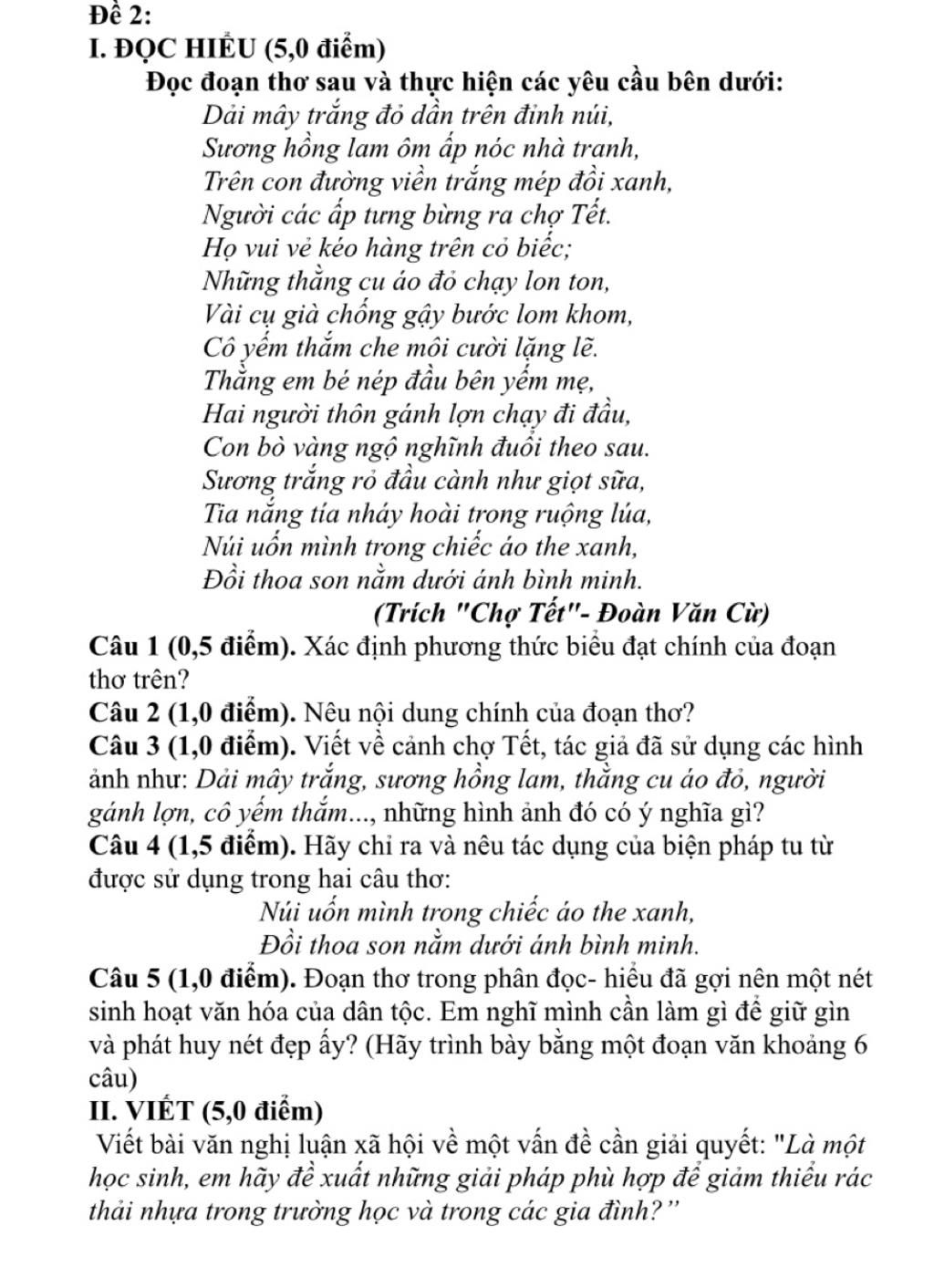 Đọc đoạn thơ sau và thực hiện các yêu cầu bên dưới: