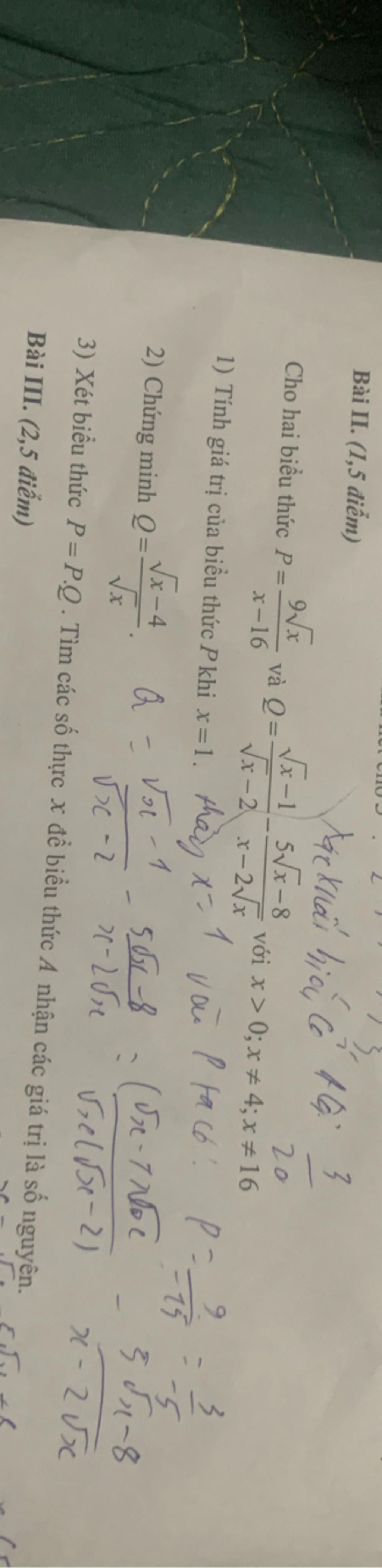 3) Xét biểu thức P = P.Q . Tìm các số thực x để biểu thức 4 nhận các ...