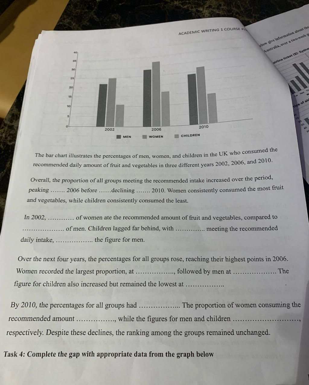 The bar chart illustrates the percentages of men, women, and children in the UK who consumed the