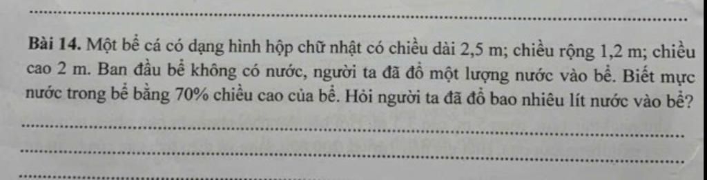 Vậy người ta đã đổ `4200l` nước vào bể.