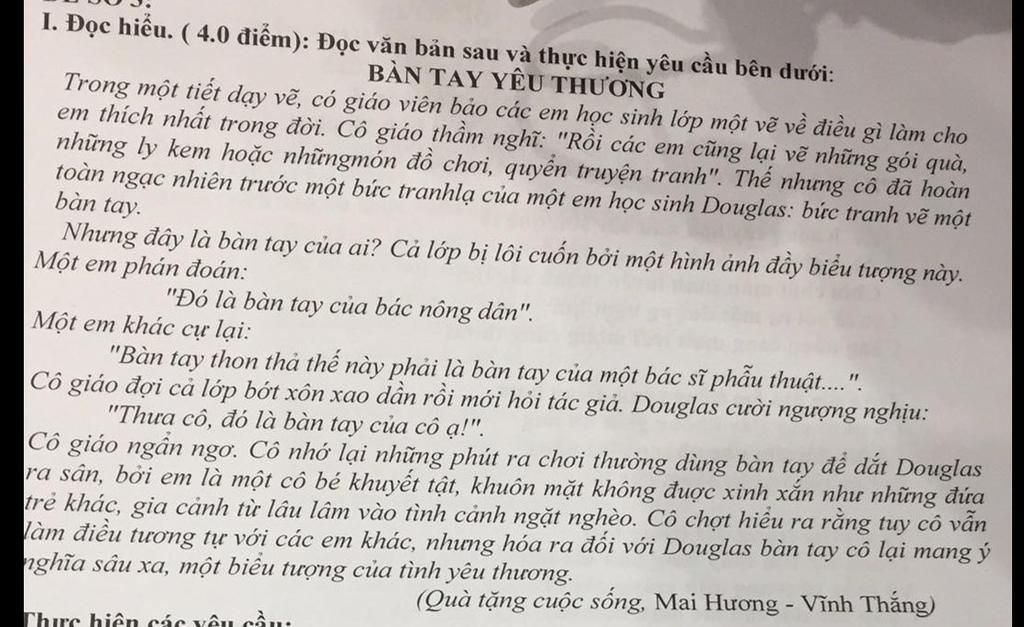 I. Đọc hiểu. ( 4.0 điểm): Đọc văn bản sau và thực hiện yêu cầu bên dưới: