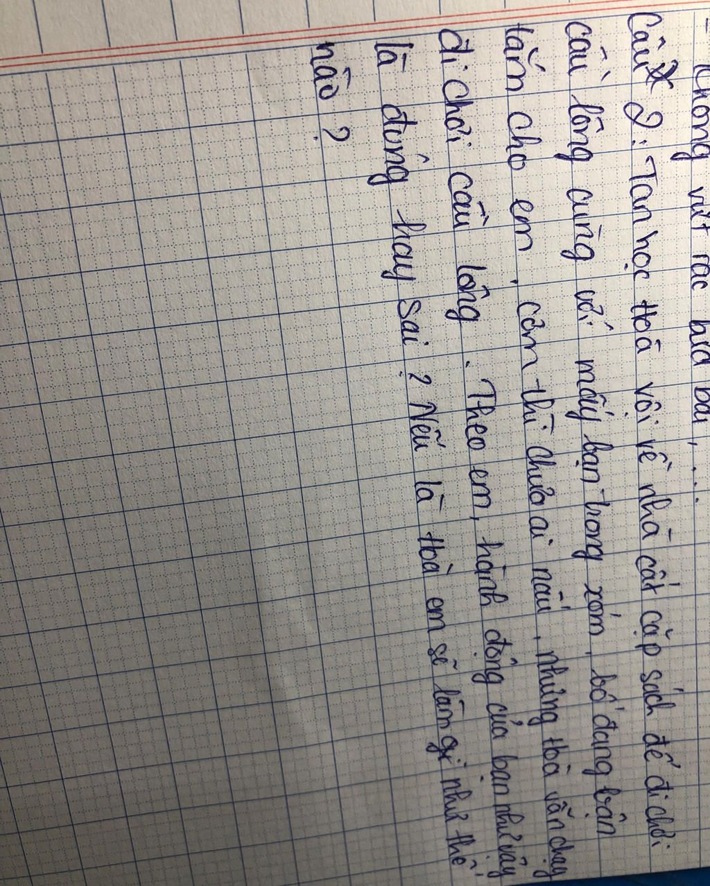 `+` Vì bố bạn bận tắm cho em , cơm nước chưa ai nấu , việc nhà còn rất nhiều mà Hòa vẫn thản nhiên đi đánh cầu lông với bạn , không hề bận tâm tới bố của mình . Cho thấy Hòa là một bạn trẻ chưa ngoan , chưa có trách nhiệm với bố mẹ .
