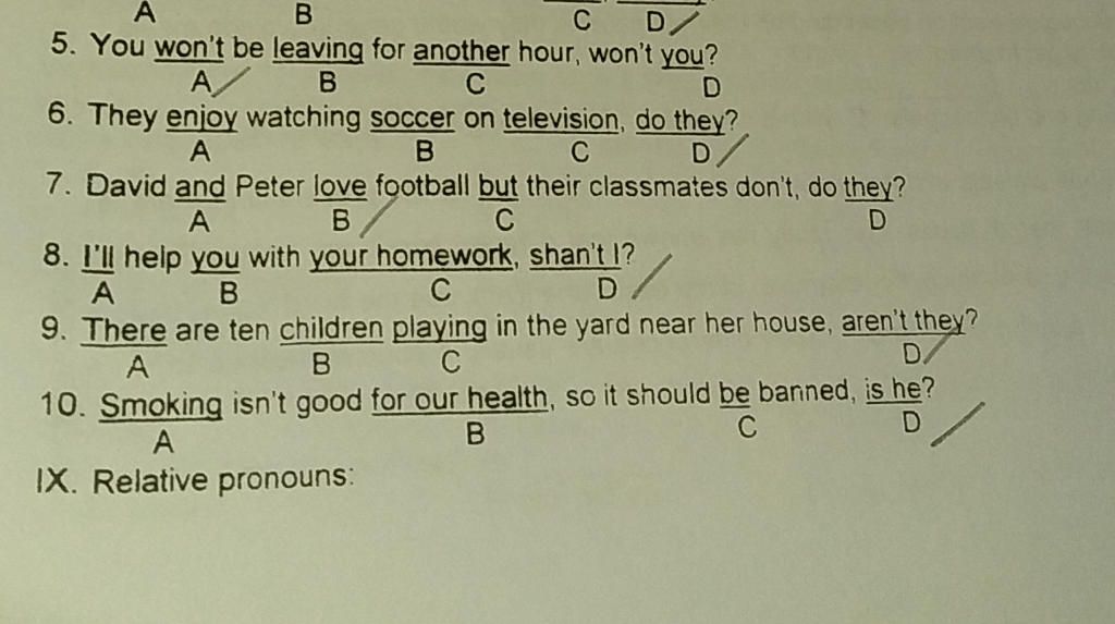 6 D (câu hỏi đuôi phủ định vì mệnh đề chính khẳng định →don't they)