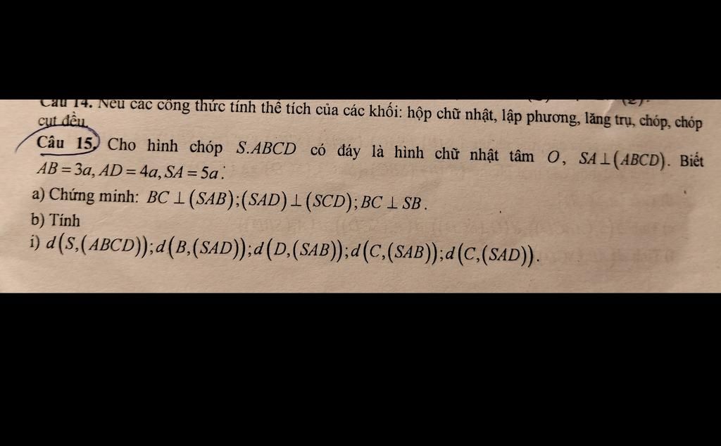 Câu 15, Cho hình chóp S.ABCD có đáy là hình chữ nhật tâm O, SAL(ABCD). Biết