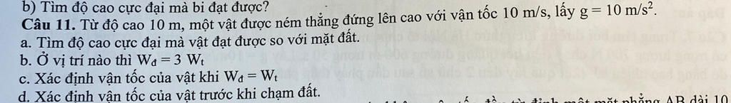 Vận tốc của vật là $v_1 (m/s)$ khi `W_đ = W_t`