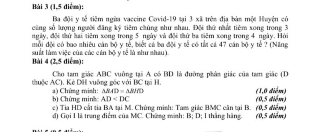 ngày, đội thứ hai tiêm xong trong 5 ngày và đội thứ ba tiêm xong trong 4 ngày. Hỏi