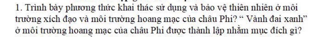 `***` Phương thức khai thác sử dụng và bảo vệ thiên nhiên ở môi trường xích đạo và môi trường hoang mạc: