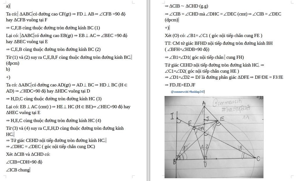 cho tam giác ABC nhọn (AB<AC) đường cao BE và CF cắt nhau tại H.