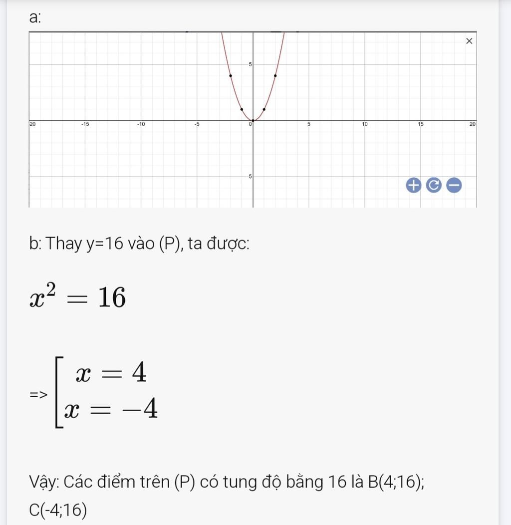 b) Tìm các điểm trên parabol có tung độ bằng 16.