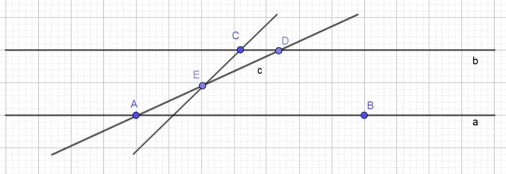 b, vẽ một điểm C không thuộc đường thẳng a, và từ C vẽ đường thẳng b song song với đường thẳng AB