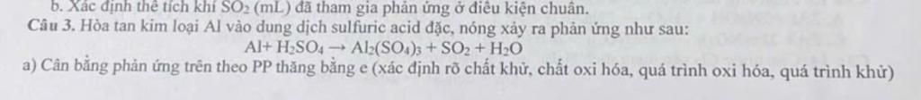 - PƯHH: `Al+H_2SO_{4(đặc)}` $\xrightarrow[]{t^o}$ `Al_2(SO_4)_3+SO_2+H_2O`
