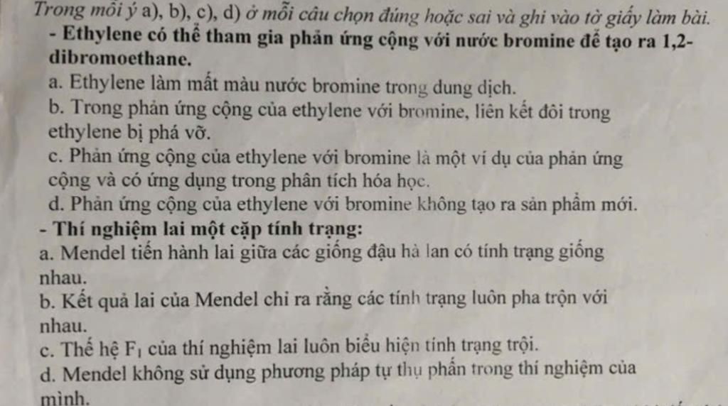 Giải thích:phản ứng cộng của Ethylene với bromine tạo ra $C_{2}$$H_{4}$$Br_{2}$