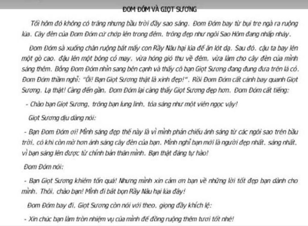 Đề bài: Viết bài văn nêu cảm nhận của em về nhân vật Đom Đóm trong truyện ngụ ngôn "Đom Đóm và Giọt Sương"