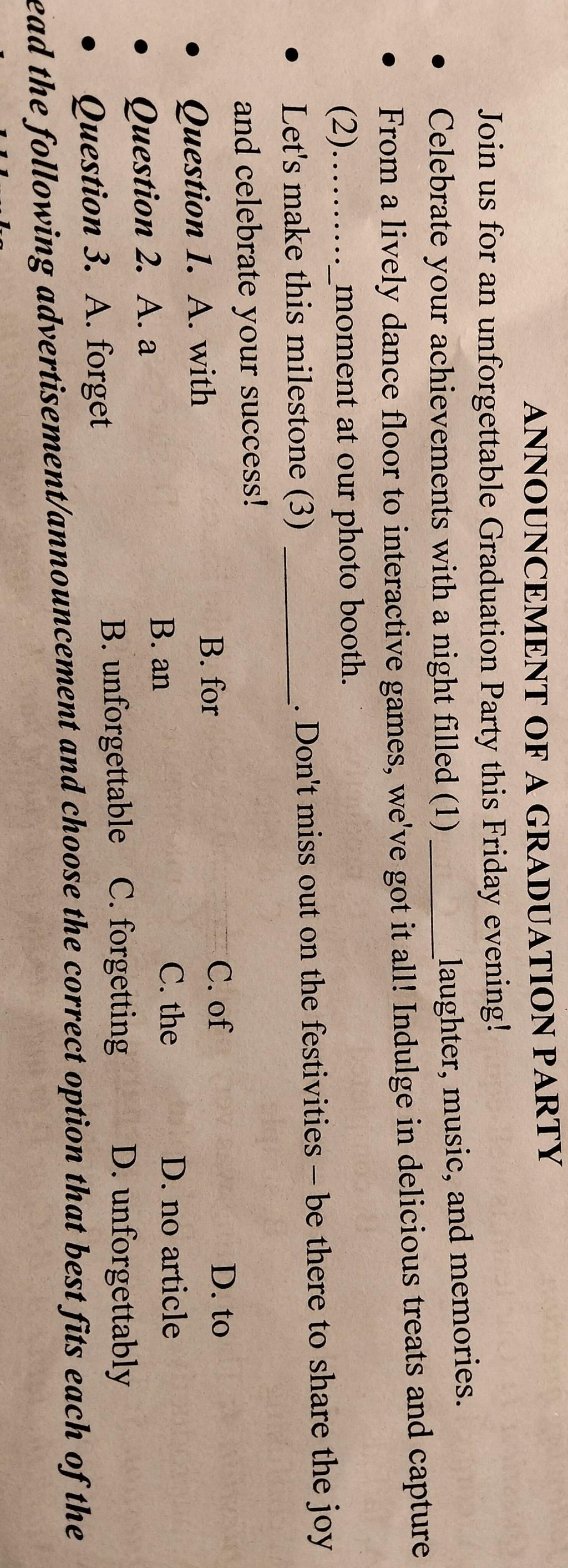 `->` A night filled with laughter , music and memories : một đêm tràn ngập tiếng cười, âm nhạc , kỉ niệm