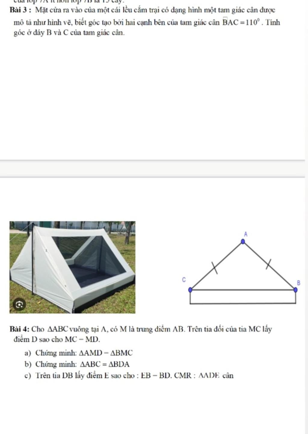 Do đó, ΔCMR : ΔADE là tam giác cân